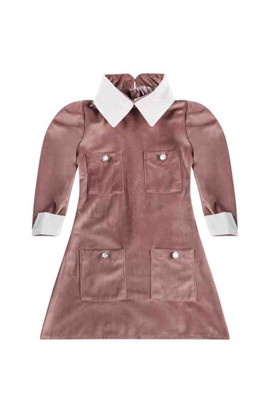 שמלת קטיפה עם שילוב של צווארון לבן,